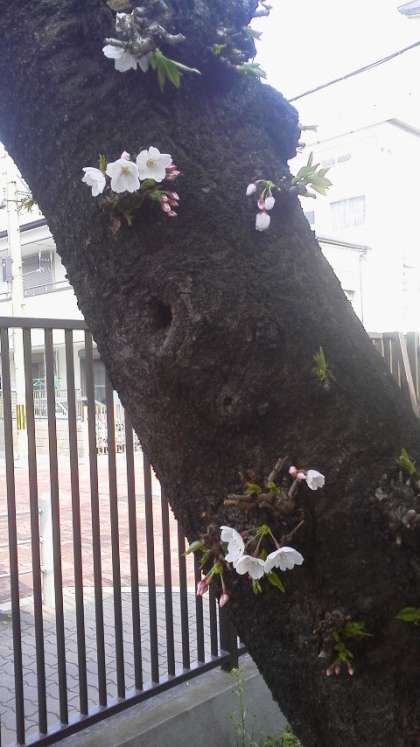 いつも高倉小学校のHPをごらんいただきありがとうございます。高倉小学校では、桜が満開になり、ご覧のように幹にもかわいい花をつけています。平成26年度の配信は本日で終了します。日々ご覧いただきありがとうございました。