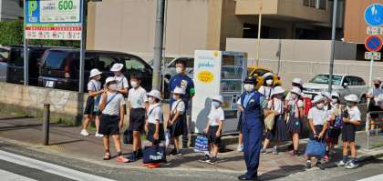 今日は1学期の終業日。明日からはいよいよ夏休みです。朝の登校時には都島警察の方々が、子どもたちの登校をも守ってくださいました。