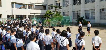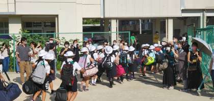 7月25日(日)、出発式を終えて、いよいよ2泊3日の林間学習に出発です。お天気もよさそうで何よりです。