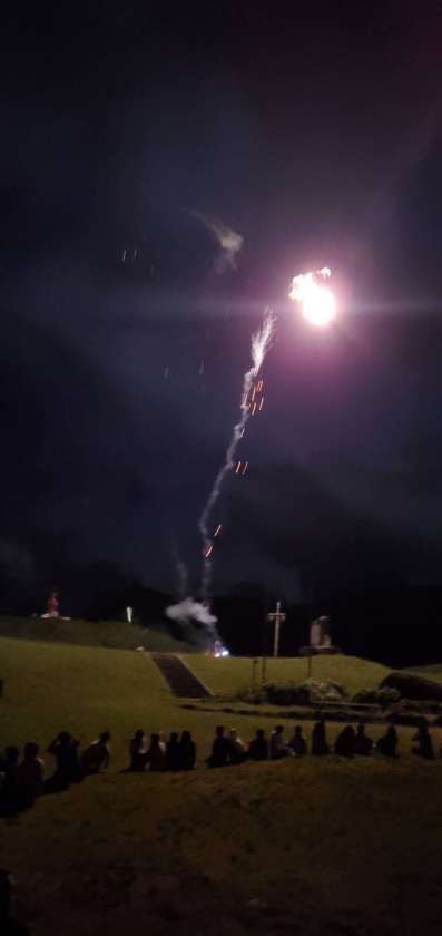 キャンプファイヤーの締めくくりは花火で!夜空にパーンと花火の音が弾ける度に、大きな歓声があがりました。