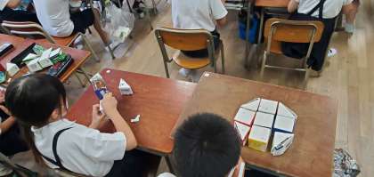 4年生は、集めるのにご協力をいただいた牛乳パック等を利用してパーランクー作りを始めています。また、エイサーの練習を始めているクラスもあります。今年はお家の方に見ていただけるようになればよいのですが・・・。