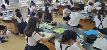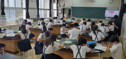 今日の3時間目、学習の様子を見て回っていると、5年生が理科室で顕微鏡の使い方についての復習プリントに取り組んでいました。