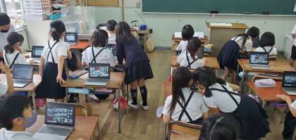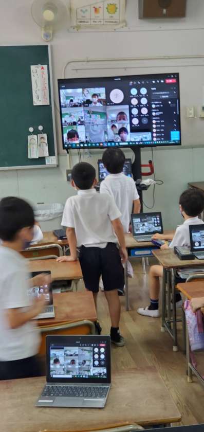 今日の4時間目、2年生がTeamsの接続テストを行っていました。なかなかうまくつながらない子もいましたが、友達同士教え合いながらがんばっていました。自分の顔が画面に映った時には大きな歓声があがっていました。