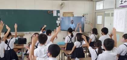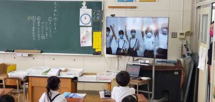 今日は2学期に入って初めての児童集会でした。今はまだ緊急事態宣言中なので、ご覧のようにテレビ放送で行いました。はじめに集会委員が見本を見せてスタートです。「船長さんが言いました」というゲームをしましたが、職員室まで子どもたちの楽しそうな声が聞こえてきました。