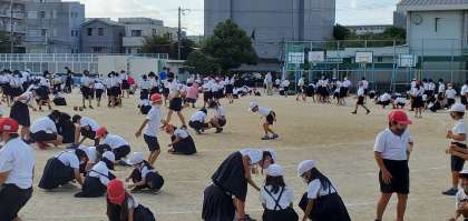 今日、今週から運動会の練習が本格的にスタートしたのに合わせて、朝の会の時間に運動場の石拾いをしました。みんな一生懸命拾ってくれたので、石を集めるバケツがみるみるいっぱいになりました。