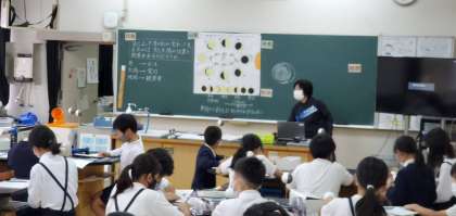 6年生が、どうして日によって月の見え方に違いがあるのかを学んでいる様子です。器具等を使って確かめながら学習していました。今夜は残念ながら月が見えそうにありませんが、明日からは理科の学習を思い出しながら眺めてほしいです。
