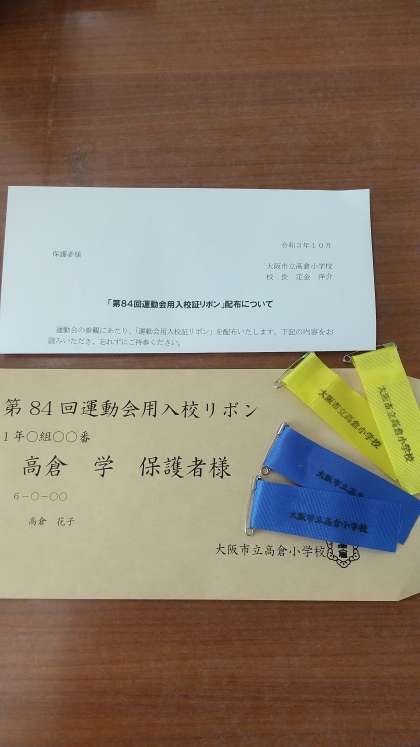 本日配布します「運動会用リボン」です。
