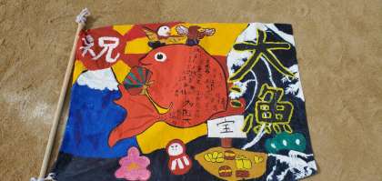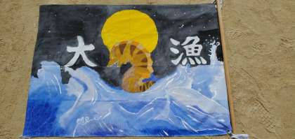 高倉小学校では、毎年5年生が南中ソーランを踊る際に振る大漁旗を、クラスごとに作成しています。