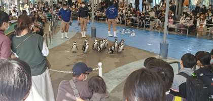 ペンギンウォークを見ています。しぐさがかわいらしいですね。