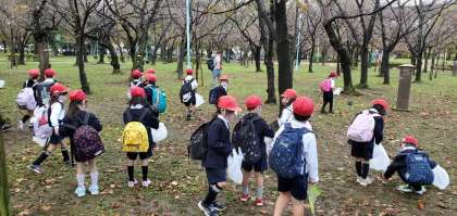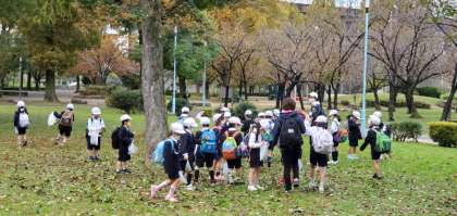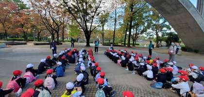 午前9時40分、城北公園に到着しました。ここからは秋見つけグループと、遊具あそびグループに分かれて活動します。