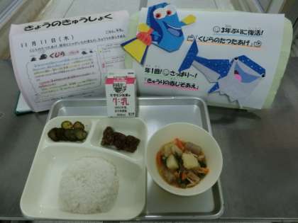 3年ぶりの『くじら』にニコニコ笑顔でした!(11/11の給食)