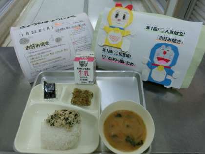大阪名物『お好み焼き』に笑顔の花がたくさん咲きました!!!(11/22の給食)