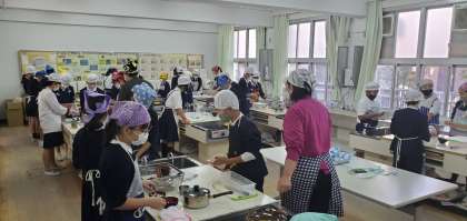 ご覧の写真は今日の1時間目、6年生が家庭科室で調理の実習をしている様子です。ようやくこういった活動もできるようになりました。