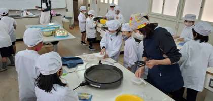 先日収穫したサツマイモを使って、2年生が家庭科室でおいもパーティーをしています。自分たちが育てたサツマイモのお味はいかがでしたか?