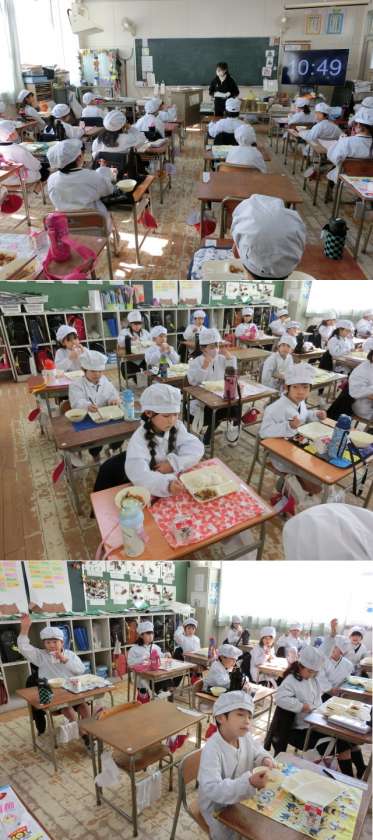 ◎ 感想にどんどん手が上がり、ニコニコ笑顔でしっかり食べている児童が多く、いつの間にか食缶がカラッポになっていました!