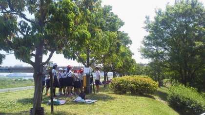 キッズファミリー班に分かれて、オリエンテーションの各ポイントをまわっています。