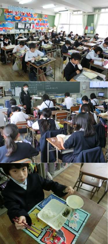 ◎ ニコニコ笑顔いっぱいのクラスで、感想にもドンドン手が上がり、いつのまにか食缶がカラッポになっている給食大好き学級でした!