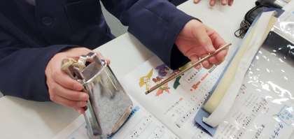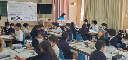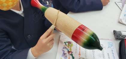 ご覧の写真は今日の4時間目、3年生が音楽の学習をしている様子です。「まほうのチャチャチャ」という曲をギロやカウベル等、様々な楽器を使って演奏していました。リズムよく演奏できていて、聴いていても楽しかったです。