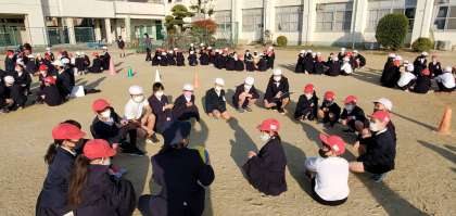 今朝の児童集会は「ゴロピカドン」というゲームをしました。班で円になり、集会委員が「ゴロゴロ」と言ったらボールを右に、「ピカピカ」と言ったら左に回し、「ドン!」と言った時にボールを持っていた人がアウトと言うものです。