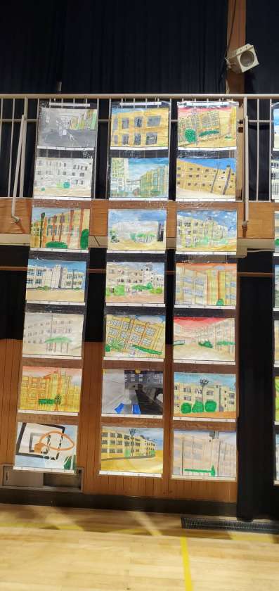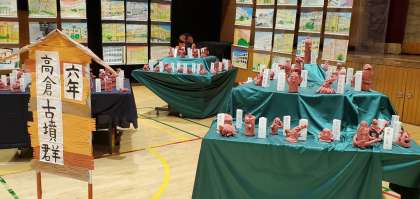 6年生は「思い出の校舎」というテーマで、高倉小学校の中で自分が描いてみたい場所を選んで写生した絵画と、「高倉古墳群」というテーマで作ったはにわを展示しています。ひとつひとつの作品に個性があり、見ていて楽しい気持ちになります。