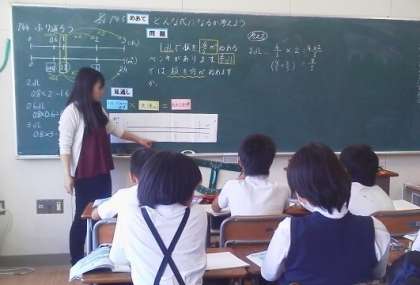 6年生では、「分数のかけ算を考えよう」で本日から、習熟度別少人数学習を行っています。2学級を三分割して三コースで学習しています。学習内容は同じですが、子どもたちは、復習をしっかりするコース、復習を少しするコース、復習をせずに6年生の学習に入るコースの中から先生と相談しながらコースを選び学習しています。「分数×分数」はなかなか難しい内容ですが、どのコースでも子どもたちは、しっかり考え挑戦していました。