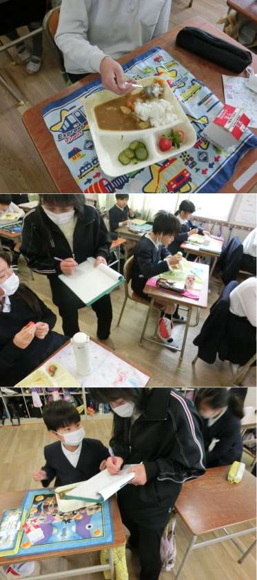 日頃からニコニコ笑顔で給食の感想を報告してくれる児童が多くいる3年生の教室で・・・