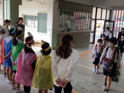 児童会の人たちが登校してきた人たちへ元気にあいさつをしてくれています。