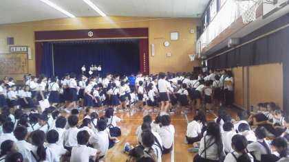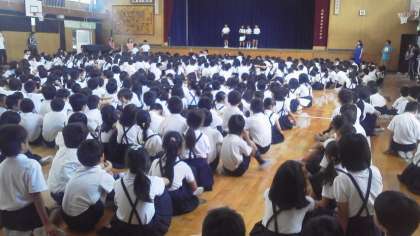 集会委員は昨日昼に、分担の学級に集会のお知らせに行き、準備をしていました。さすがですね!終了後は、まず、6年生が1年生を連れて退場しました。