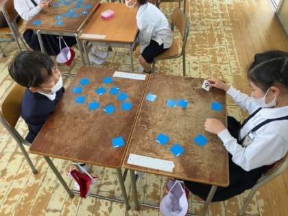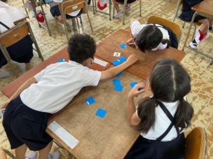 今日はカードを使って、10を分けられる数を探すゲームをしました。