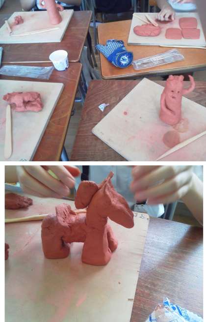 6年生は、社会科の学習で歴史を学んでいます。図画工作でも、古墳時代のシンボルである埴輪作りに挑戦していました。社会科資料集に載っている埴輪の写真等を参考に、粘土で思い思いの埴輪を作っていきます。歴史で学んだ古代の人々の暮らしを思いうかべながら取り組んでいたのでしょうね!