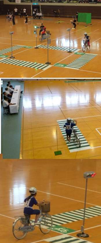 選手は、まず、学科試験に取り組みました。自転車の交通安全のルールを学習した子どもたちは真剣に回答していました。