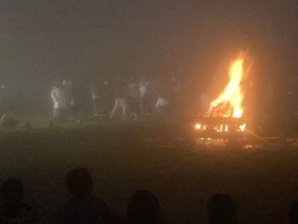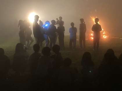 霧が出てきて、スタンツなどが見えづらくなってきましたが、とても幻想的な情景となっています。宿舎の方にライトも照らしていただいています。