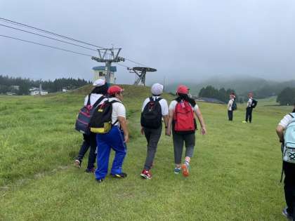 8時に最初のグループが山登りに出発しました。みんなで協力して頂上をめざします。