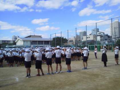 今週は、「手洗いうがい週間」です。本日の児童集会で、健康委員会児童が前に立ち、手洗いの仕方を示し呼びかけました。本校では、給食前の手洗いタイムには「ゴッシー」という曲に合わせ、手洗いを呼びかけています。この曲に合わせると、見落としがちな指と指の間や指先、手首までを順を追って洗うことができます。本日もこの「ゴッシー」に合わせての発表でした。毎学期、このような強調週間を設け、挑戦させると共に自分の結果を振り返らせ、健康を守る意識やそのために必要な手洗い等を実行する力を伸ばしたいと考えています。