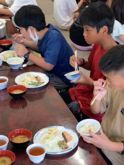 昨夜はしっかり睡眠がとれた人が多かったようです。ご飯もしっかり食べて今日の活動に備えたいと思います。