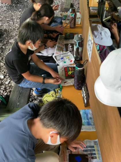 昨日の焼き板作りが仕上がらない人が多かったので、暑いこともありネイチャーゲームをやめて焼き板作りの続きをしています。