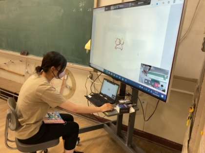 接続テストも兼ねて、2年生以上で簡単な活動をオンラインでおこないました。