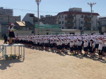 久しぶりに運動場で児童朝会を行いました。