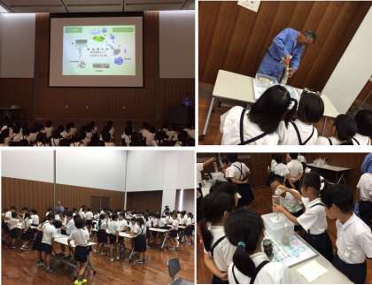 淀川の水を活用した浄水場の仕組みを映像で学習した後、実験をするグループと施設見学するグループに分かれ、交替で見学しました。