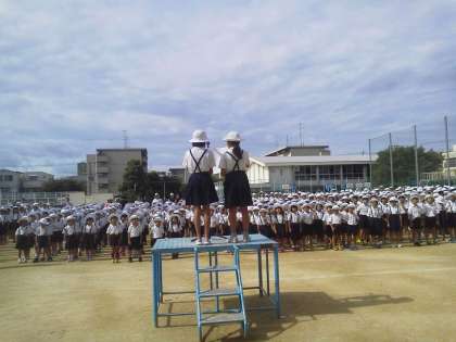 7月13日の児童朝会で、児童会代表がユニセフ募金の結果を報告しました。