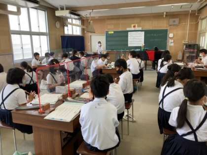 音やリズムを確かめ、リコーダーの指使いを練習します。
