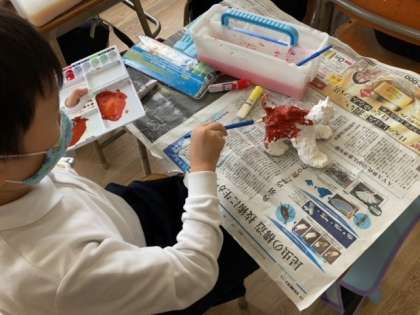 国語で学習した物語文「サーカスのライオン」の主人公じんざを紙粘土を使って作っています。