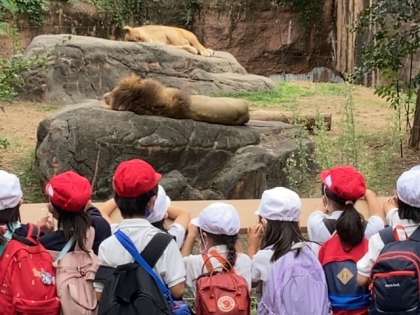 お待ちかねのライオンも見ましたが、お昼寝中で、「起きてー」と呼びかけていました。