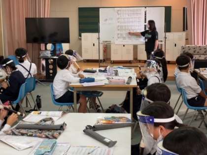 楽譜を見て、音の長さや休符に注意してリコーダー練習をします。