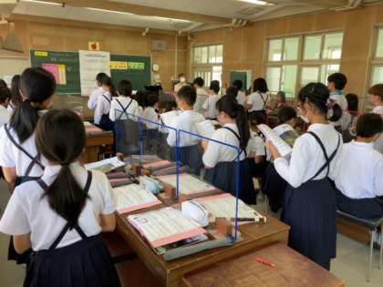 8分の6拍子の拍に合わせて、歌ったりリコーダー演奏したりしました。