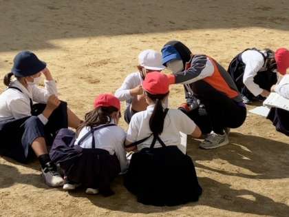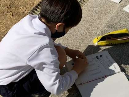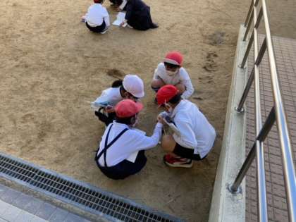 正午は「やっぱり温度が上がってる!」「日かげは地面を触ったら冷たいから下がっているかも」と予想しながら観察をしました。