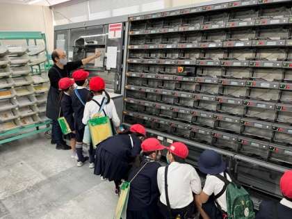 都島郵便局に行ったグループは、お話をうかがったり作業について詳しく教えていただいたりしました。
