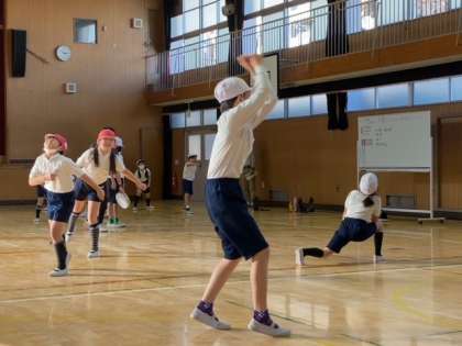 忍者になっていろいろな動きを考えながら、グループで体を動かします。