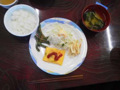 朝食は和定食。登山をひかえ、しっかり食べました。
