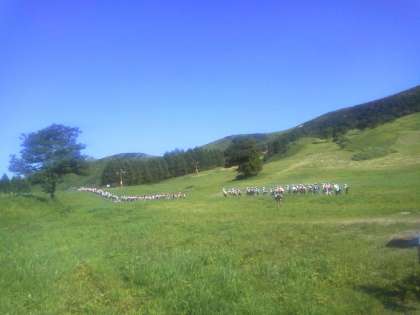 快晴に恵まれ、青い空に向かって行くように頂上を目指してひたすら歩きます。